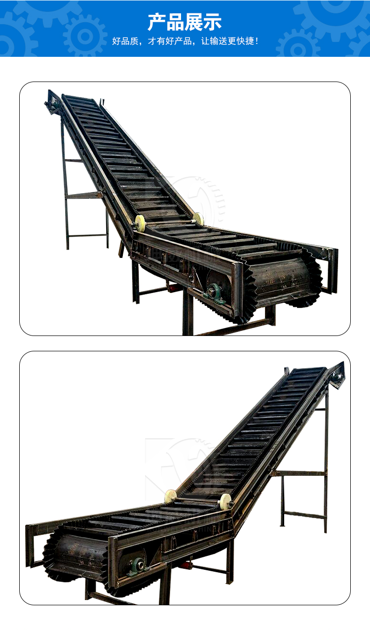 大傾角皮帶輸送機(jī) 依靠其特有的優(yōu)勢(shì),在企業(yè)中的使用越來越普遍,在提升高度相同的情況下,所占地面和空間少,并且具有常規(guī)帶式輸送機(jī)的所有特點(diǎn),投資成本低,因而在生產(chǎn)運(yùn)輸