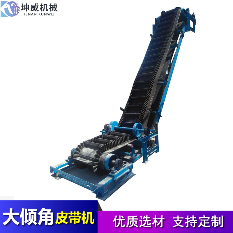 大傾角皮帶輸送機跟普通皮帶輸送機的區(qū)別就在于,大傾角的輸送角度是大于25°,而小于25°傾角的,都是建議使用普通皮帶輸送機的,普通皮帶輸送機也是可以有一定的傾角。那么大傾角皮帶輸送機相比較普通皮帶機有哪些優(yōu)勢呢?